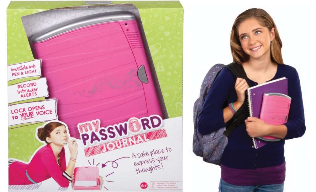 This stylish electronic journal offers the utmost privacy and protection, so girls can safely store their secret thoughts and belongings! Girls can use their own voice to personalize the password, greeting, and intruder alert — plus, write with invisible ink for extra security!